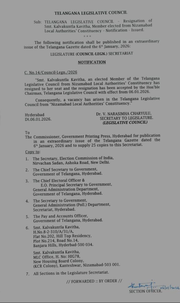 క‌విత రాజీనామా ను ఆమోదించిన మండ‌లి చైర్మ‌న్