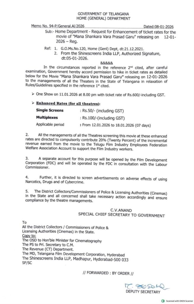 టాప్ హీరోల సినిమాలపై తెలంగాణా ప్రభుత్వం ఒక్కో హీరో సినిమా పై… ప్రభుత్వం ఒక్కో లా నిర్ణయం తీసుకుంటుంది. సంక్రాంతి పండగ సందర్భంగా ప్రముఖ హీరోల సినిమాలు వరుసగా విడదలౌతూ వస్తున్నాయి. నిన్న మొన్నటి వరకు రాజాసాబ్ సినిమా సందడి సినీ వర్గాల్లో కనిపించగా ….తాజాగా వన శంకర వర ప్రసాద్ సినిమా తెరపైకి వచ్చింది. రాజాసాబ్ సినిమా ధరలు పెంచేందుకు ప్రభుత్వం నిర్ణయం తీసుకోవడంలో తీవ్ర జాప్యం చేసింది. కానీ చిరంజీవి నటించిన మనశంకర వరప్రసాద్ సినిమా ధరల పెంపుకు అడిగిందే తడువుగా నిర్ణయం తీసుకుంది. సినిమా టికెట్ల ధరలు పెంచుకునేందుకు యుద్ధప్రాతిదకన ఆదేశాలు ఇచ్చింది.దీంతో ప్రభుత్వం వ్యవహరిస్తున్న తీరుపై సినీ వర్గాల్లో కొత్త చర్చకు దారి తీస్తోంది. రాజకీయ నేపథ్యం ఉన్న కుటుంబం కావడంతోనే ప్రబుత్వం మనశంకర వర ప్రసాద్ పై వెంటనే నిర్ణయం తీసుకుందన్న చర్చ జరుగుతోంది. అయితే సినిమా టికెట్ల పెంపుపై వివాదాలు ఇప్పుడు కొత్తేమి కాదు. ప్రభుత్వం టికెట్ల పెంపుకు అనుమతిస్తే పలువురు కోర్టులను ఆశ్రయిస్తూ ప్రభుత్వానికి చిక్కులు తెచ్చి పెడుతున్నారు.