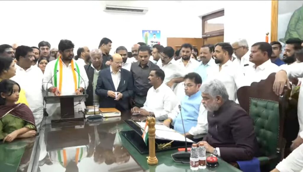 ఇటీవల జరిగిన ఉప ఎన్నికల్లో జూబ్లీహిల్స్ శాసనసభ నియోజకవర్గం నుండి ఎన్నికైన వి. నవీన్ యాదవ్ శాసనసభ సభ్యునిగా ప్రమాణ స్వీకారం చేశారు.స్పీకర్ చాంబర్లో గడ్డం ప్రసాద్ కుమార్ కొత్త ఎమ్మెల్యేతో ప్రమాణ స్వీకారం చేయించారు. ఈ ప్రమాణ స్వీకార కార్యక్రమంలో మంత్రి దుద్దిళ్ళ శ్రీధర్ బాబు, మైనారిటీ వ్యవహారాల శాఖ మంత్రి అజహరుద్దిన్, GHMC మేయర్ విజయలక్ష్మి, పార్లమెంట్ సభ్యులు, శాసనసభ్యులు, శాసనమండలి సభ్యులు, కార్పోరేషన్ చైర్మన్లు, ప్రజాప్రతినిధులు మరియు లెజిస్లేచర్ సెక్రటరీ వి. నరసింహా చార్యులు.నవీన్ యాదవ్ కు తెలిపి అసెంబ్లీ రూల్స్ బుక్స్, గుర్తింపు కార్డును అందజేసిన స్పీకర్ ప్రసాద్ కుమార్ గారు.