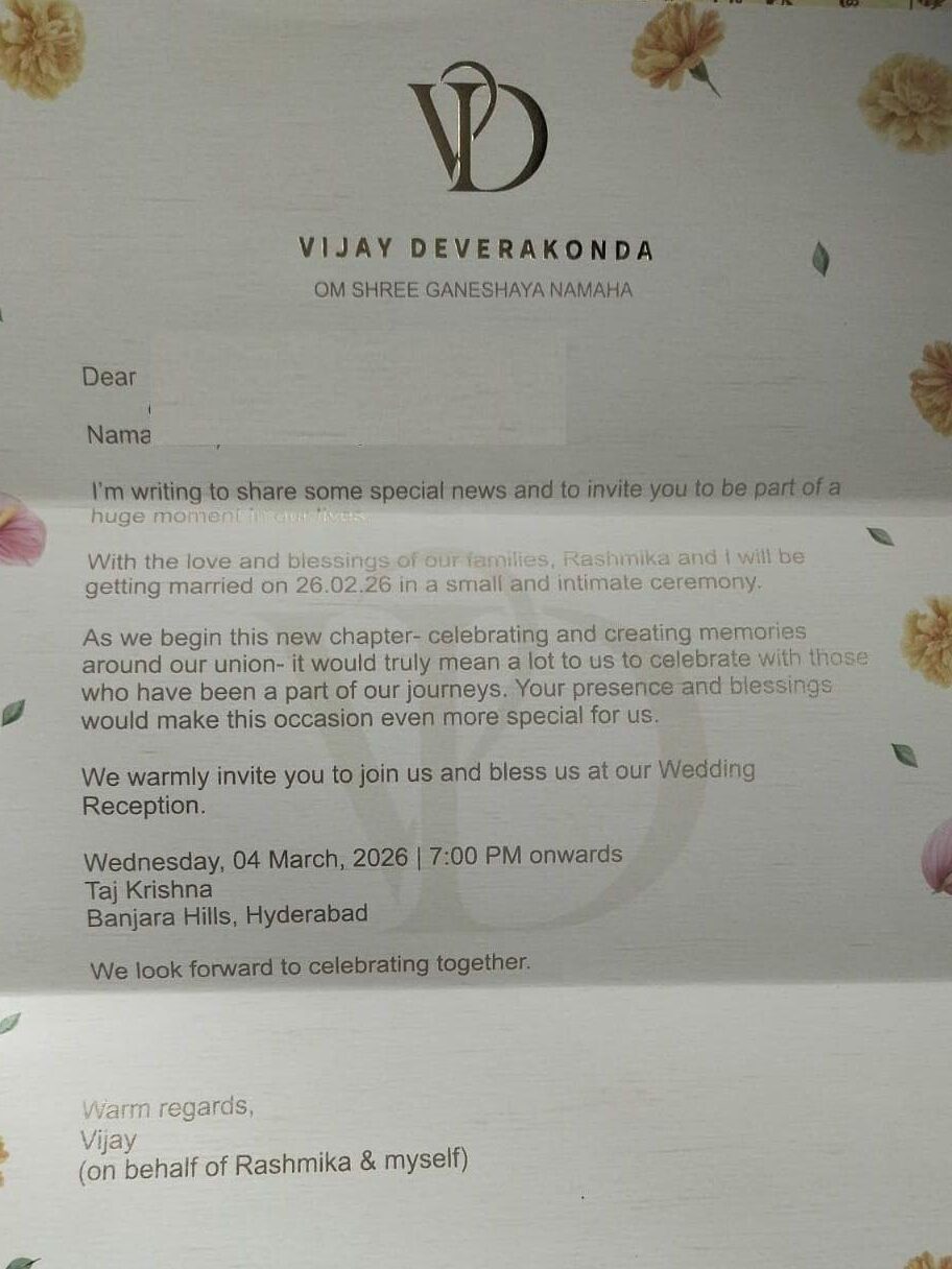 తెలుగు సినీ ప్రేక్షుకులకు విజయ్ దేవరకొండ, రష్మిక మందాన ఈ రెండు పేర్లు కొత్త కావు….వాళ్ల మధ్య లవ్ స్టోరీల గురించి ఎన్నో ఏళ్లుగా చర్చ జరుగుతోంది. గీతా – గోవిందంతో మొదలైన వీరి కాంబినేషన్ జీవితంలో కూడా కలిసి నడిచే విధంగా అడుగులు పడుతున్నాయి. సినిమాలో లవ్ స్టోరీతో మొదలైన వీరి ప్రేమాయణం జీవితంలో కూడా నిజం అవుతోంది. ఈ నెల 26వ తేదీన ఈ జంట వివాహ బంధంలోకి అడుగు పెడుతోంది. వీరి వివాహం రాజస్థాన్ లో ని ప్యాలెస్ లో ఘనంగా జరుగనుంది. అతి తక్కువ మందికి మాత్రమే పెళ్లికి ఆహ్వానాలు అందిస్తున్నట్లు పెళ్లి ఆహ్వాన పత్రికలోనే పేర్కొన్నారు. మార్చి 4వ తేదీన హైదరాబాద్ తాజ్ క్రిష్ణ లో గ్రాండ్ గా రిసెప్షన్ ఏర్పాటు చేస్తున్నట్లు ఆ వెడ్డింగ్ కార్డులో ఉంది.