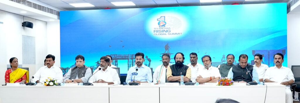 అనంతరం మీడియాతో మాట్లాడిన సీఏం గ్లోబల్ సమ్మిట్ ప్రాముఖ్యతను వివరించారు. ప్రభుత్వంలోని అన్ని శాఖలు సమన్వయంతో గ్లోబల్ సమ్మిట్ ను విజయవంతం చేయాల్సిన అవసరం ఉందన్నారు. అంతర్జాతీయ స్థాయిలో పెట్టుబడులు ఆకర్షించేందుకు రూపొందిస్తున్న విజన్ డాక్యుమెంట్ ను సంబంధిత మంత్రులు శాఖల వారిగా పరిశీలించి ఖరారు చేయాలని సూచించారు